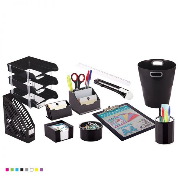 طقم مكتب بلاستيك 8 قطع 1355 (اسود + ملون)